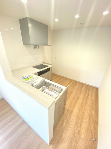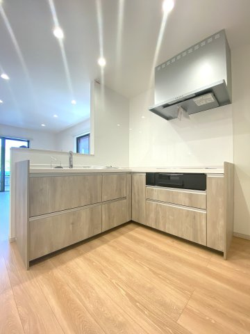 毎日の家事が便利で楽しくなる、L字型の対面キッチンです。カウンター部分には充実した収納スペースも備わっています。