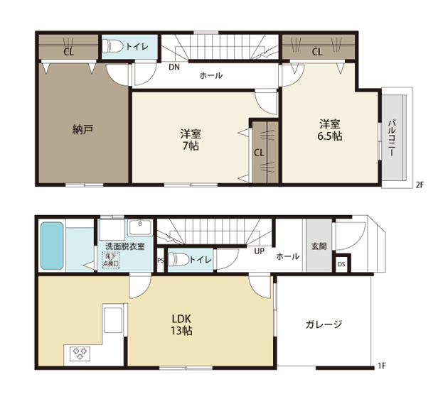 2Fトイレ部分。コンパクトながらも使い勝手が良い設計です。トイレが2か所あることで、混み合う時間もストレスフリーに♪