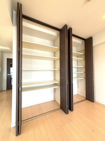 リビング収納には家族で使うもの、日用品や家電の収納など幅広くご活用できます。リビングに収納があることで、物が散らからずすっきりとした生活が可能です♪