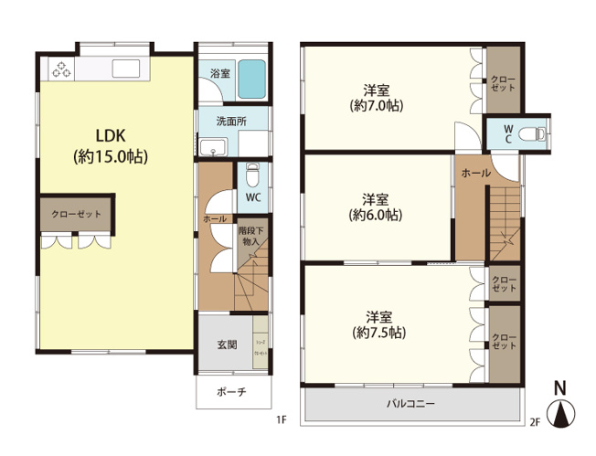 静かな住宅街にございます。2階まで暖かな日差しが差し込む戸建てです。