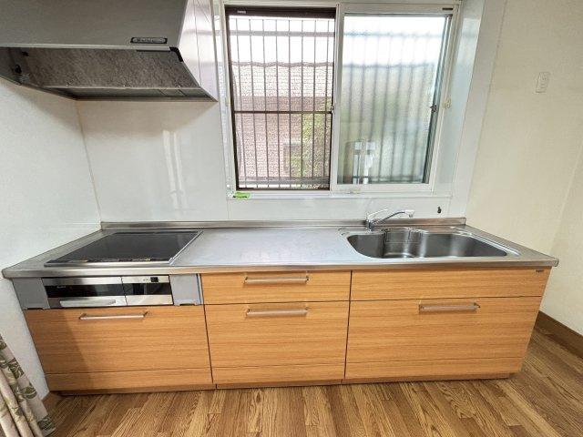 オール電化で嬉しいIH付き・システムキッチンです。スライドにはお鍋やフライパン、調味料もたっぷりと収納可能です♪窓付きで採光性・換気も◎