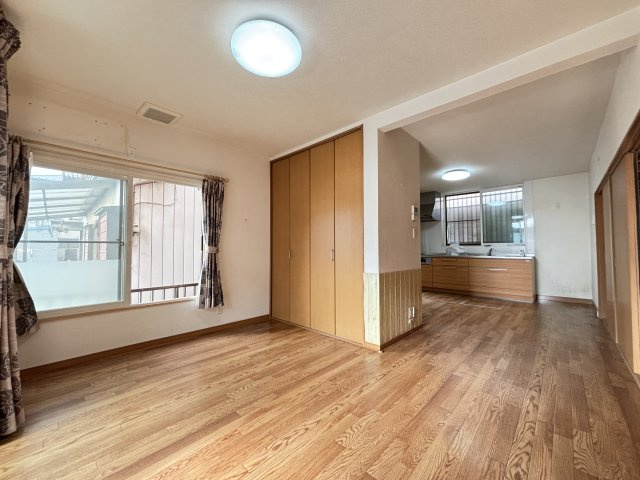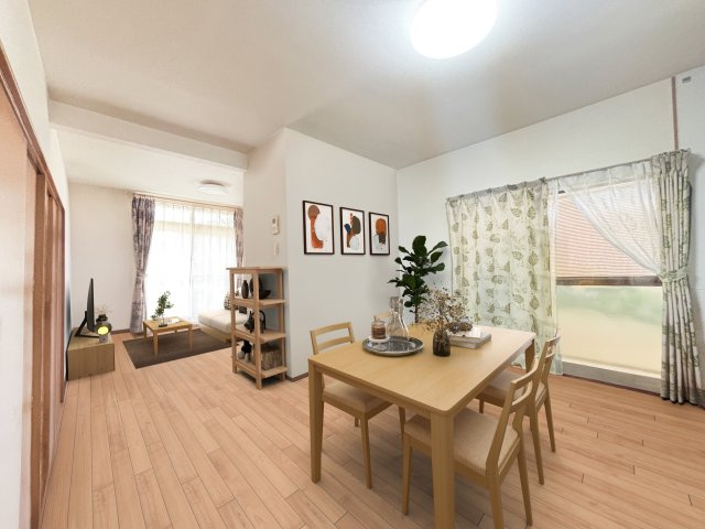 約15帖のLDKは、2面採光性で日当たり良好!あたたかな日差しが差し込みます。リビング収納付きで、衣類や日用品の収納にも活用できます。※バーチャルCGインテリア使用