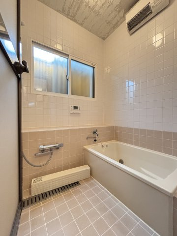 明るいタイルの浴室は広い浴槽付きです。日々の疲れをゆっくりと取ることができそうです。