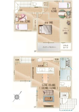 LDKは18.9帖と洋室4.5帖の間仕切を開放することで4LDKにも対応可能です。