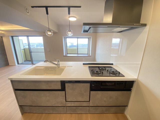 フルフラットキッチンを採用。大きな調理スペースはもちろんのこと、大容量のサイドフードが調理の匂いもリビングへより広がりずらくなります。毎日のお料理が楽になる食洗機付きです。