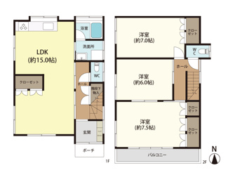 LDK 15.0畳 1室 洋室 7.5畳 1室 洋室 7.0畳 1室 洋室 6.0畳 1室 |